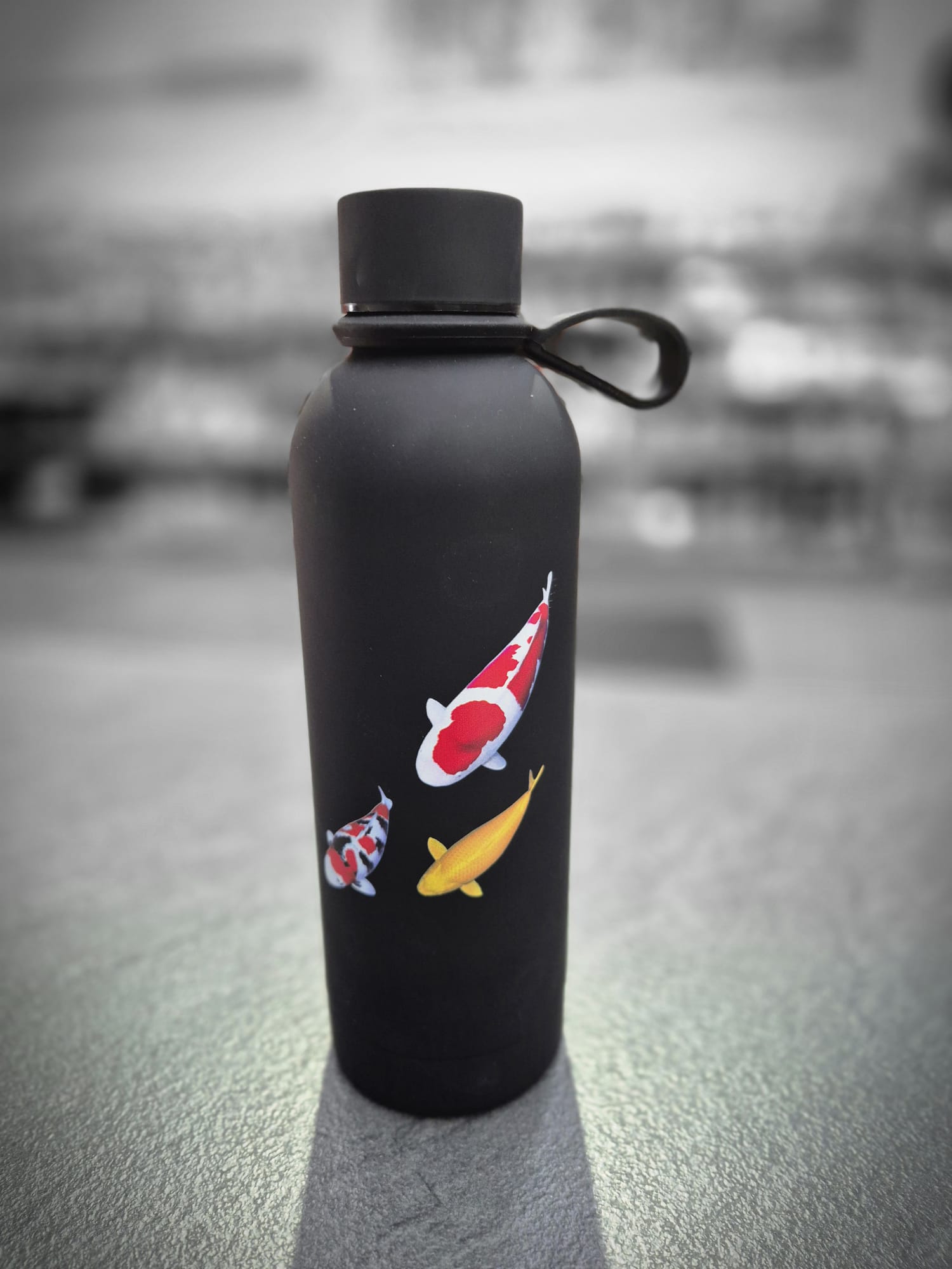 Borraccia con disegno koi in accaio inossidabile con manico in silicone