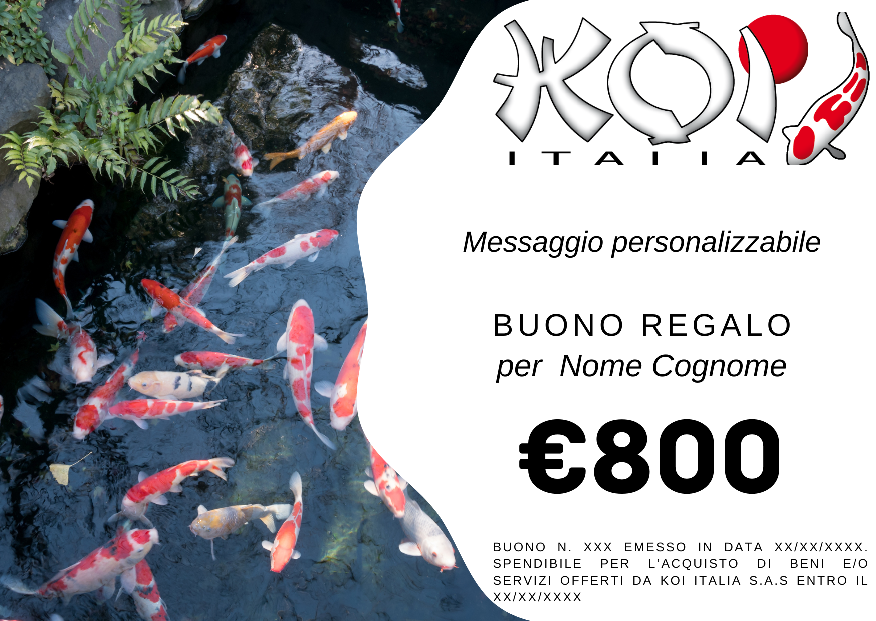 IDEA REGALO KOI ITALIA! Buono regalo da € 800,00 spendibile per l'acquisto di TUTTI i prodotti presenti sul nostro sito internet.