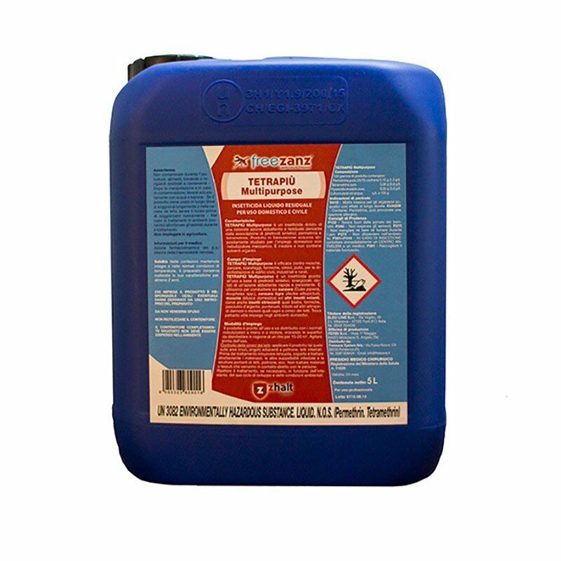 TETRAPIÙ Multipurpose è un insetticida liquido per uso domestico e civile, raccomandato da Freezanz per l’impiego con Zhalt Portable. Prodotto pronto all’uso nella sua pratica tanica da 5 litri.