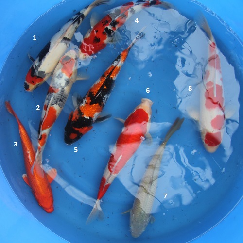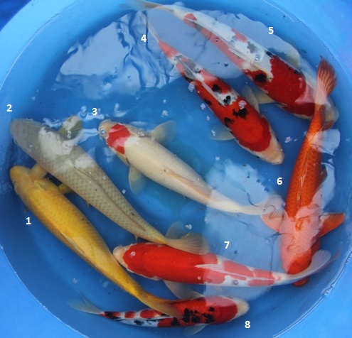Kin ki utsuri, asagi, kin kikokuryu, maruten kohaku, doitsu gin matsuba, ginrin ki matsuba