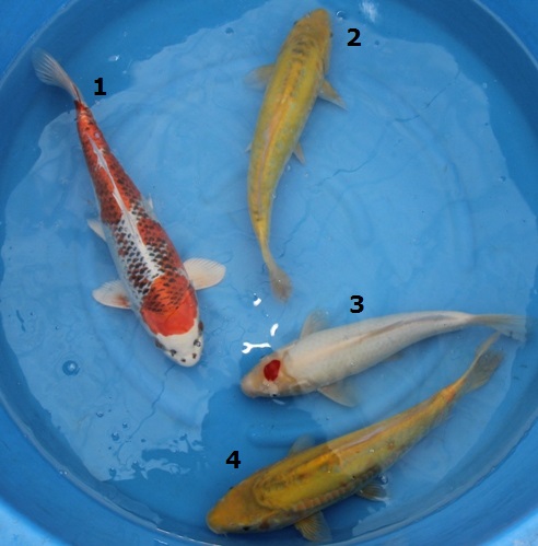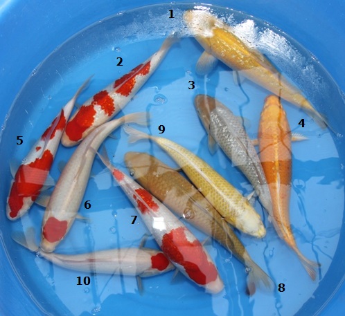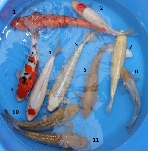 Foto 13Ginrin benigoi; tancho; sanke; mukashi; doitsu chagoi; doitsu soragoi; yamabuki; ginrin chagoi