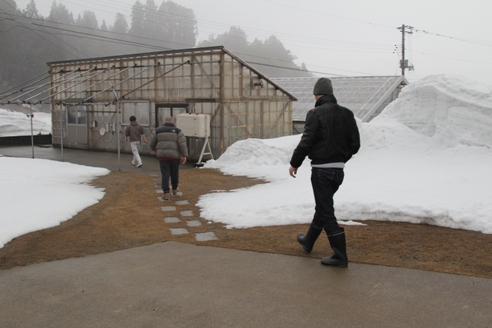 Il primo allevatore verso il quale ci dirigiamo è Hosokai. Il suo allevamento è su uno dei punti più alti delle montagne di Yamakoshi. Sembra impossibile che fino a poche settimane fa la neve qui fosse ancora più alta!