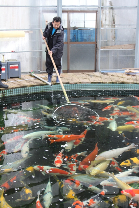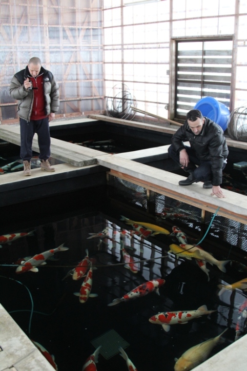 Lasciamo anche questo allevamento e ci dirigiamo alla volta di Ikarashi. Questo allevatore è noto per l'elevata qualità delle sue koi. In particolare è famoso per le sue bellissime yamabuki, asagi e goromo. E' inoltre l'allevatore che per primo ha dato vita alla varietà kikokuryu ed i suoi esemplari di questa varietà sono tra i più belli.