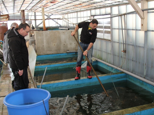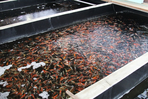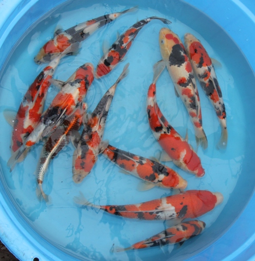 Da questo allevatore facciamo un controllo della qualità delle tosai. Siamo contenti di vedere che la qualità è ottima. Dunque tra poche settimane importeremo da Hosokai tosai nelle varietà kohaku, sanke, showa, kin showa, asagi, shusui, shiro utsuri, sakura, goshiki e goromo, nella taglia 12-14.