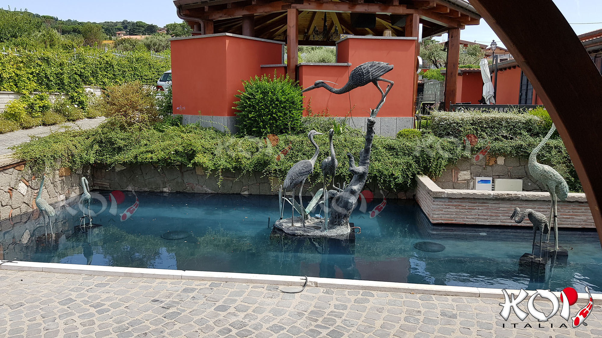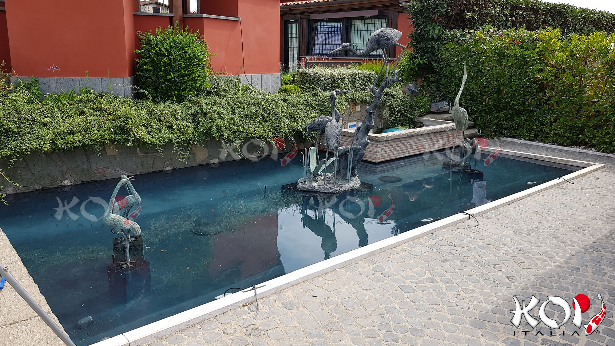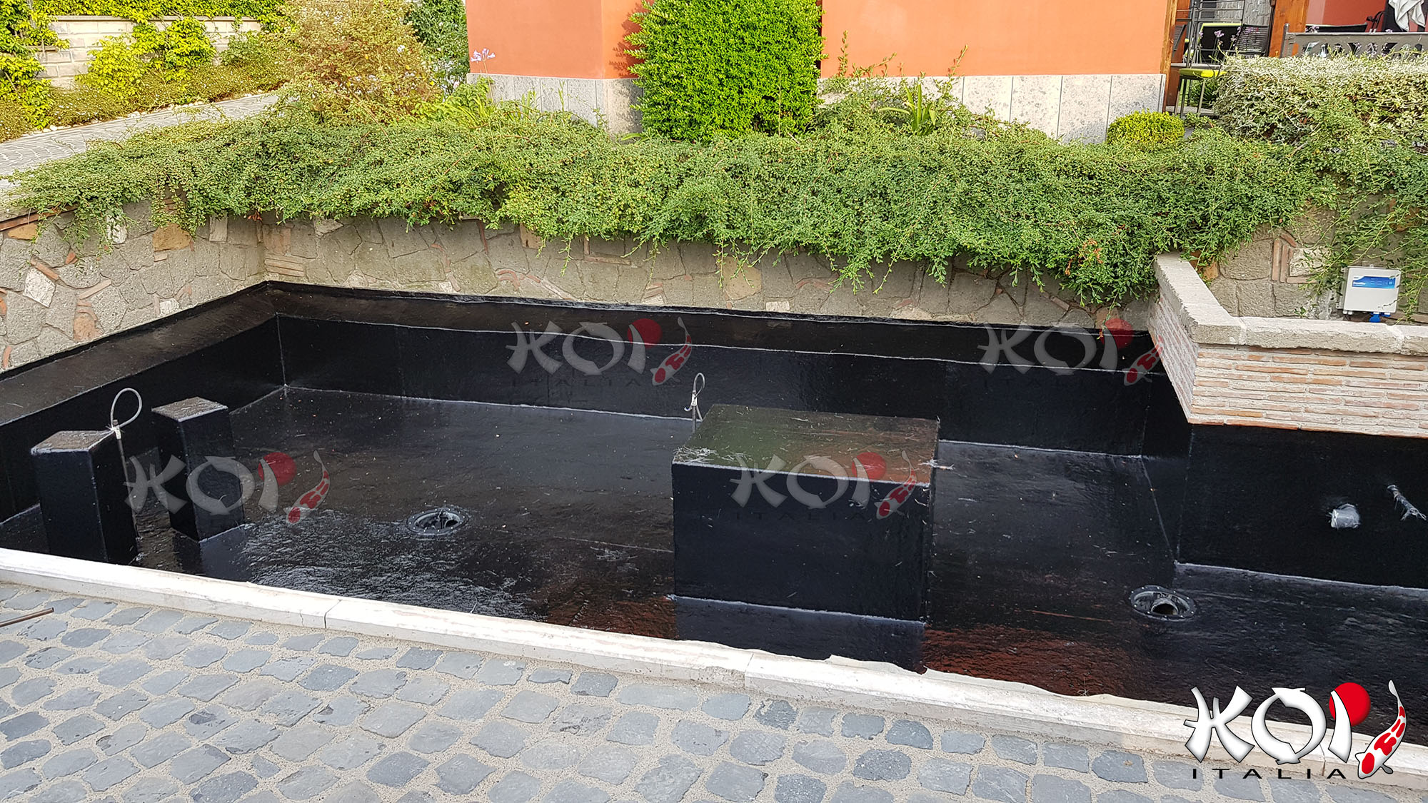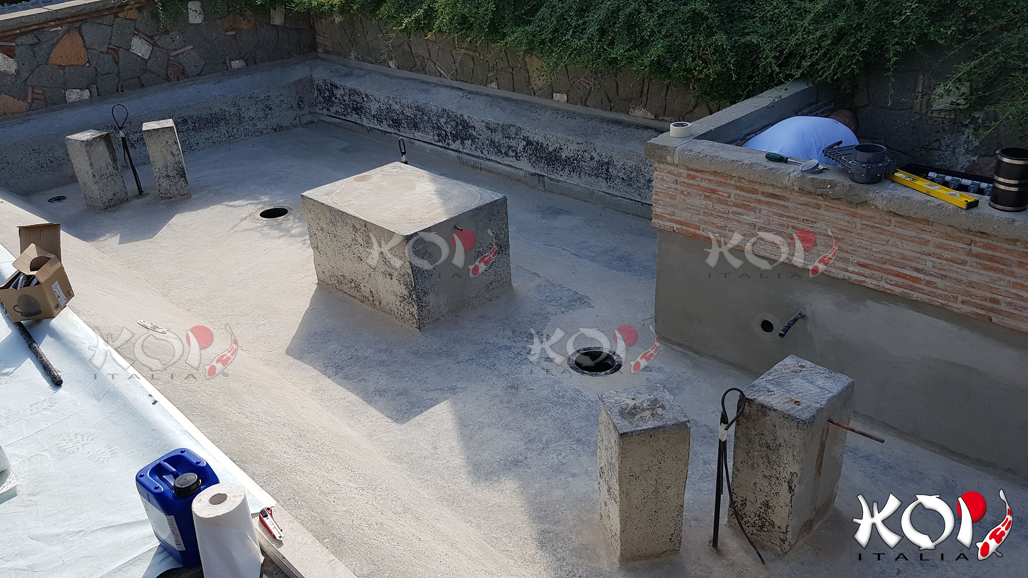 Questa vasca già esistente al momento del nostro intervento presentava importanti carenze di filtraggio e perdite di acqua. Con il nostro intervento abbiamo dotato la vasca di aspirazioni e mandate, abbiamo impermeabilizzato la vasca con un rivestimento in vetroresina e abbiamo installato un sistema di filtraggio a tamburo e perline.