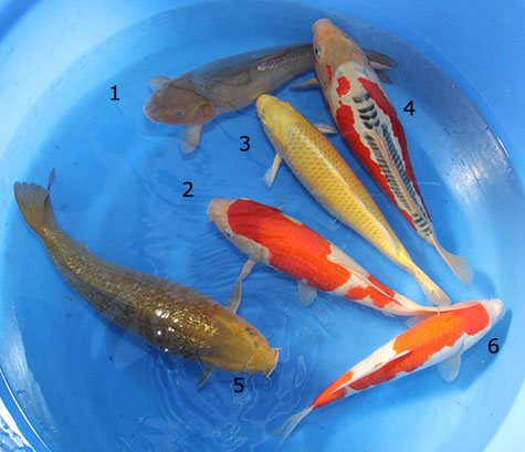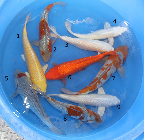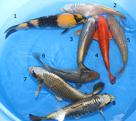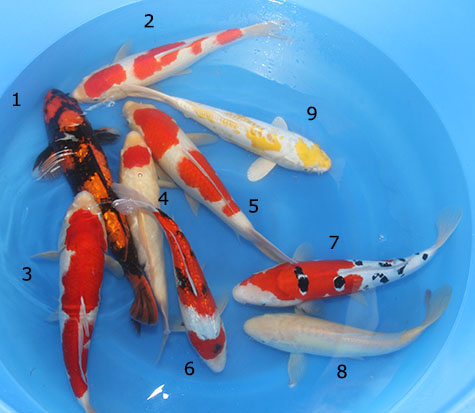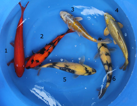 Doitsu kigoi, yamabuki, hariwake mizuho, tancho sanke, kin matsuba, gin matsuba, shusui, ginrin chagoi