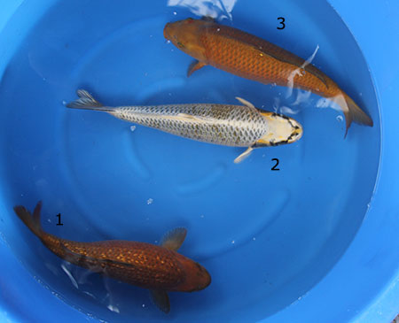 Qui selezioniamo due splendidi esemplari di tancho sanke e due di shusui. La qualità è molto alta e la foto non rende giustizia a queste magnifiche koi. In attesa di vedere le foto che pubblicheremo una volta che i pesci saranno in Italia, vi consigliamo vivamente di vedere il video.