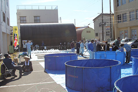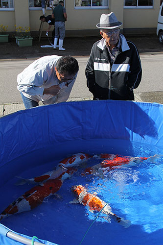 In questo periodo capita frequentemente di vedere questi piccoli koi show e le koi sono molto interessanti.