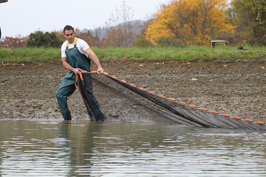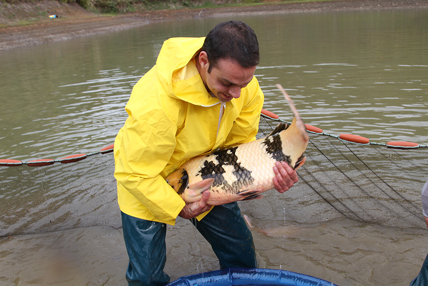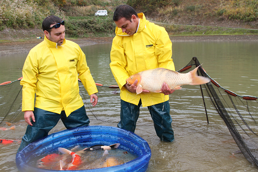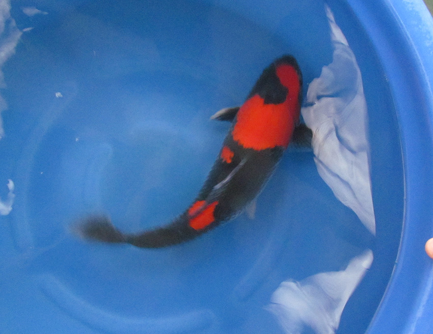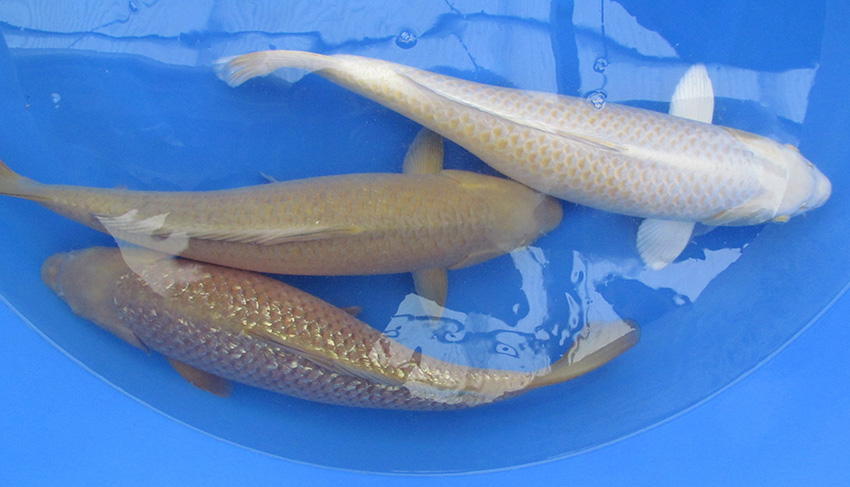 Terminato con le koi di questa taglia, passiamo alle koi più grandi. Qui selezioniamo tre esemplari di 3 anni