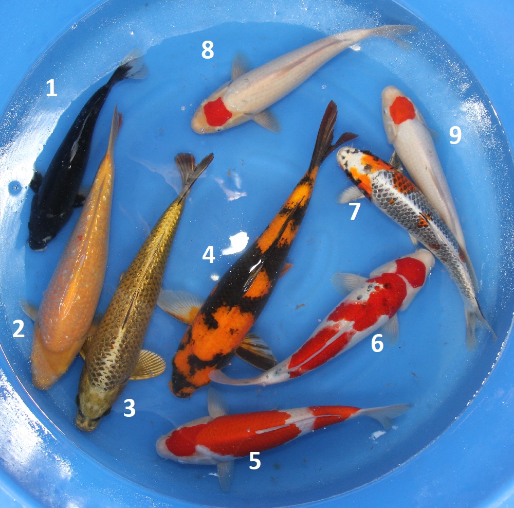 Shusui, Goshiki, ginrin tancho goschiki, doitsu hariwake, doitsu kohaku, doitsu tancho sanke, kosui