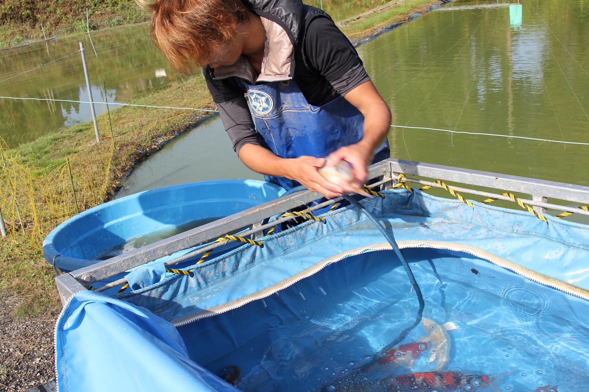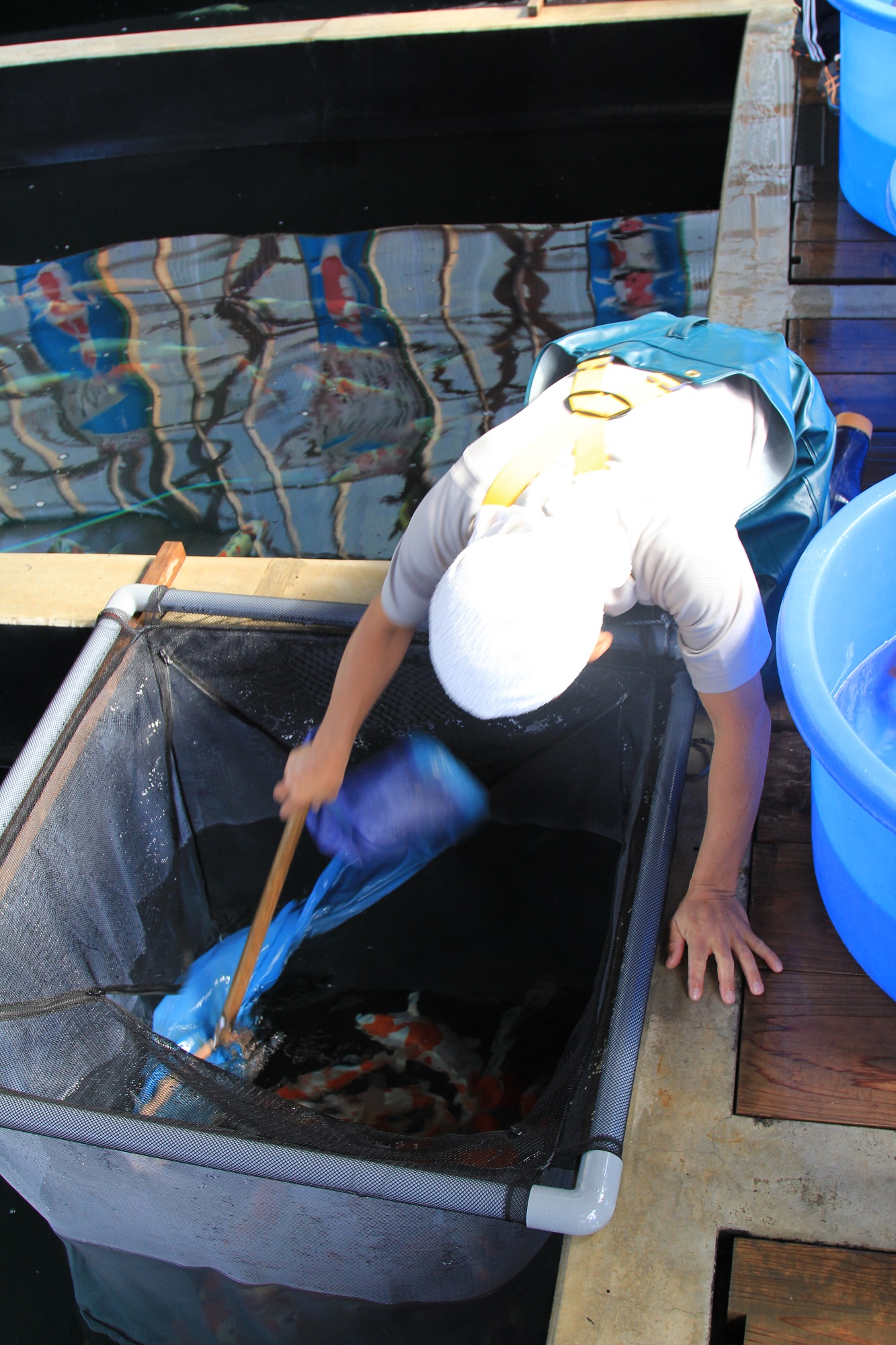 Le koi vengono portate nella serra ed abbiamo la possibilità di sceglierle per primi.