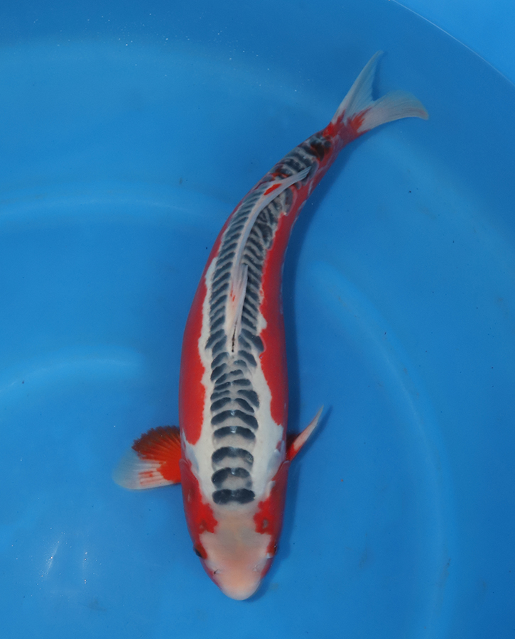 Di questa koi più che la lunghezza di 93cm colpisce il body che è letteralmente esplosivo.