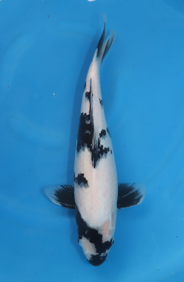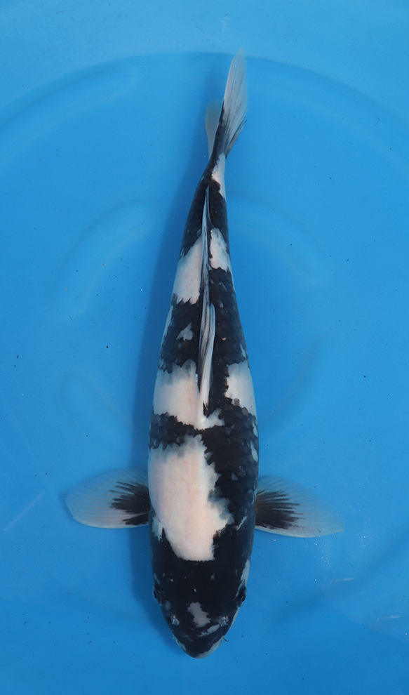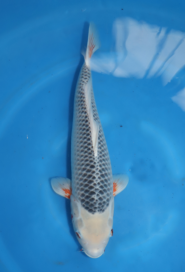 Infine selezioniamo due shiro utsuri jumbo tosai da togliere il fiato ma quando iniziamo a fare le foto l'allevatore torna mortificato a dirci che queste due shiro utsuri sono finite nella vasca di vendita per errore e che erano in gara all'All Japan Koi Show. Per scusarsi dell'accaduto ci porta ad una vasca coperta e ci dice che possiamo selezionare uno ed un solo esemplare da questa vasca. All'interno ci sono solo Shiro utsuri jumbo tosai da rimanere a bocca aperta. Ne selezioniamo una di 38cm. Lasciamo a voi i commenti.