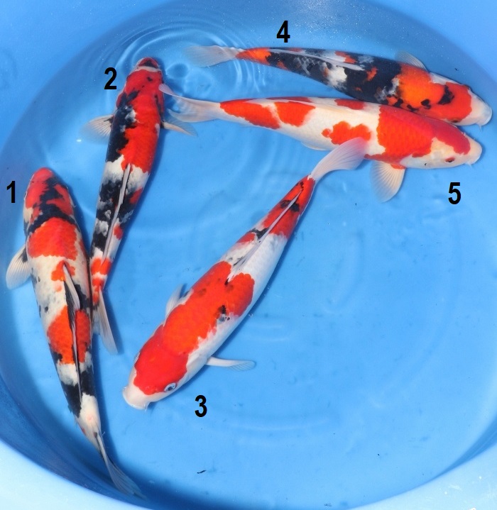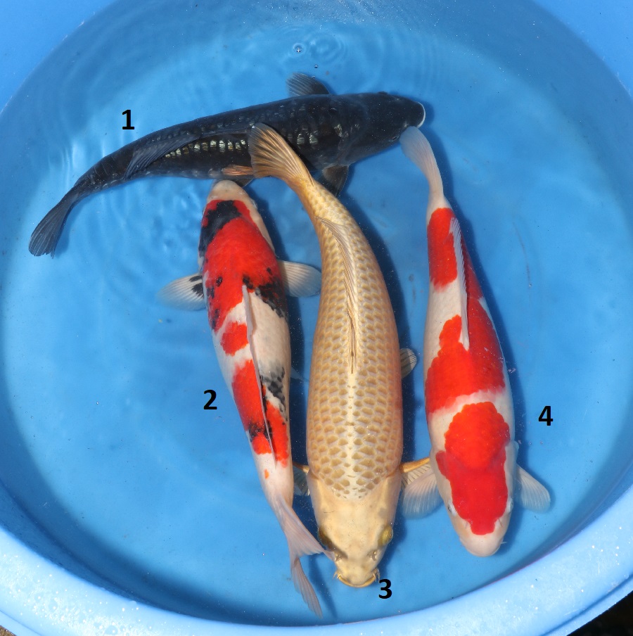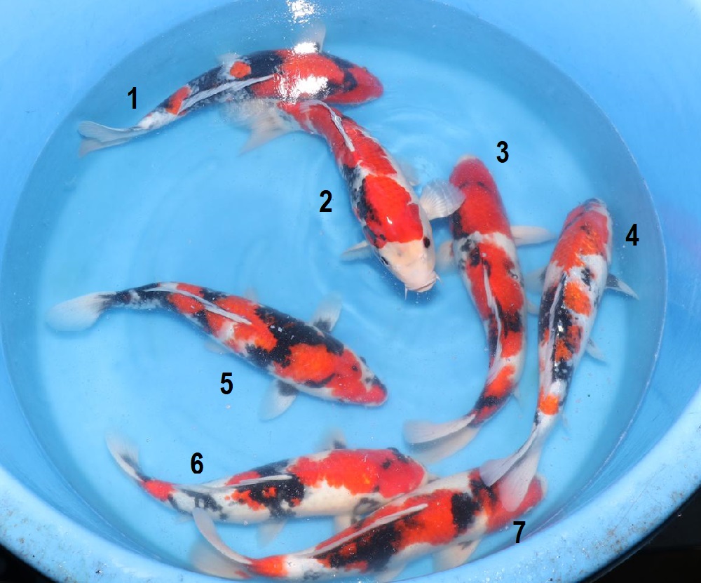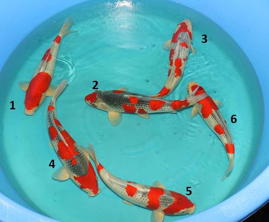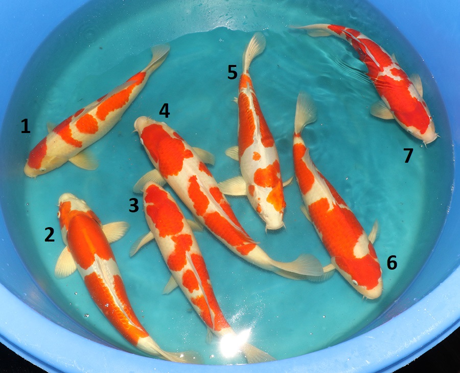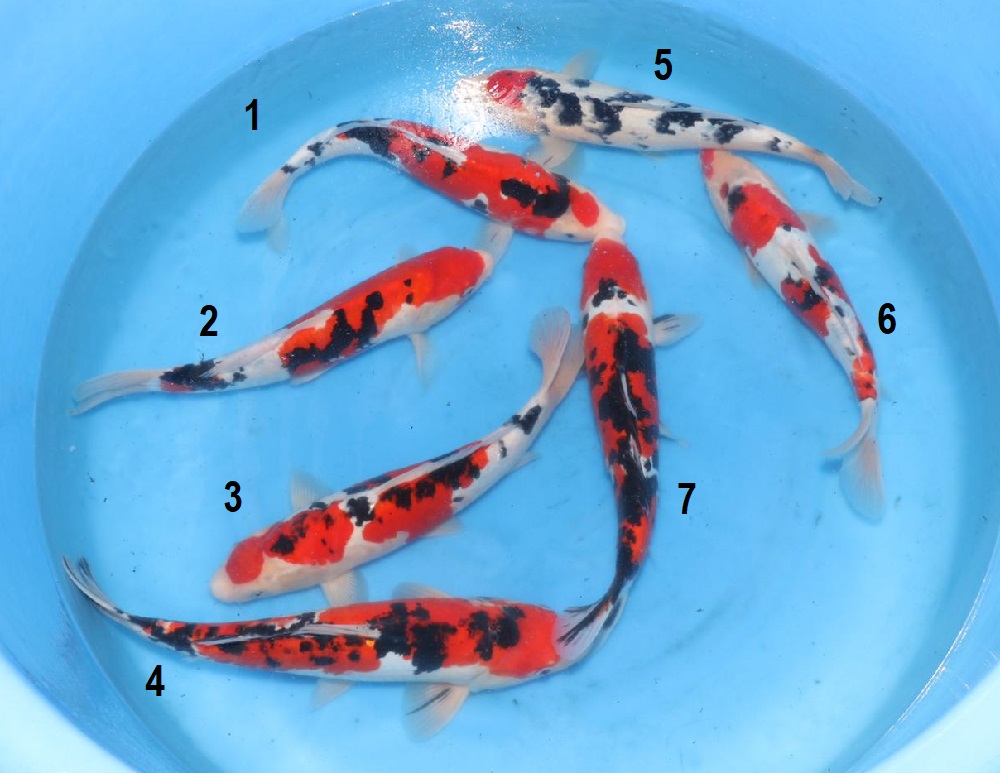 Diamo inizio a questa selezione con delle koi jumbo nisai veramente belle. L'allevatore è Maruhiro e gli abbiamo chiesto di selezionarci koi che avessero un potenziale di accrescimento molto alto. Siamo molto, molto soddisfatti degli esemplari scelti da Hironori per noi. Nonostante la giovane età (si parla convenzionalmente di nisai ma in realtà hanno solo 1 anno e mezzo), hanno tutte già un'impostazione da jumbo! Tutte le showa, inoltre, hanno il nero in progressione.